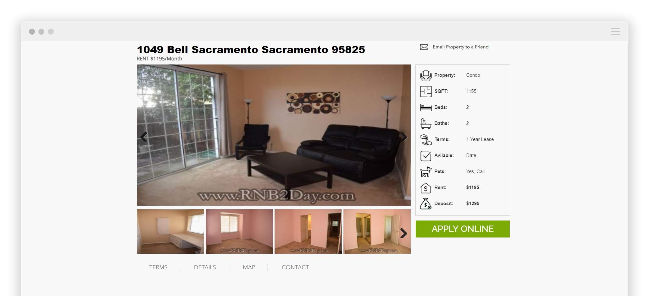 Prospective renters are thoroughly screened based on credit score, income, and background check. They can apply and sign a custom lease directly through our site.